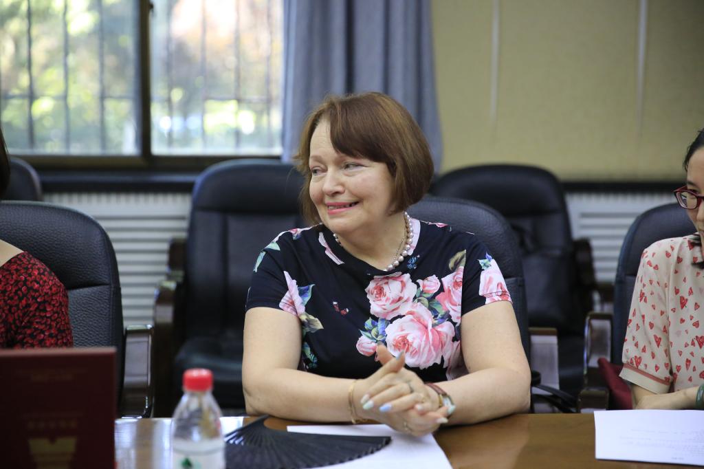 座谈会伊始,俄语系主任孟霞对“西安友谊奖”进行了简单的介绍;随后,娜塔莎发表的获奖感言,句句真挚,饱含了对中国、对中国教育事业的热爱之情,参会者们都大为感动。接下来,俄语系副主任王翠作为教师代表、优秀学生本科生代表田欣雅、研究生代表张英杰,博士生代表李莹莹等人作为学生代表,分别讲述了自己眼中的娜塔莎以及她对俄语系师生的积极影响。发言中,大家频频提到她的敬业精神、她的教育情怀、她的。随后,董书记对娜塔莎老师的获奖情况表达了真诚的祝贺,也对其为中俄友谊做出的巨大努力表达了由衷的感谢。同时,他要求全体师生能够担负起建设伟大祖国的使命,为中华民族的伟大复兴贡献力量;他希望全体外籍教师都能投身中国教育事业,为中外交流做出积极贡献;对于俄语系未来的发展,他也提出了建议。