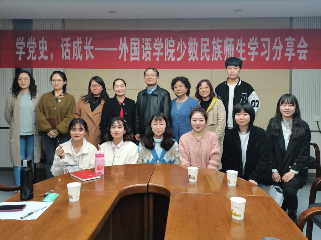 会议伊始,大家观看了《永葆初心:习近平讲述百年征程》,共同回顾了我党波澜壮阔的百年征程。随后,参会师生分别根据自身对党史学习的理解以及自身成长经历积极发言。王红首先结合自身的留学经历,畅谈祖国的强大繁荣得益于共产党领导下各民族共同的努力;巢玥从民族向心力出发,指出我国的民族融合自古以来就有深厚积淀;董洁从党的民族政策入手,谈到了党对少数民族学生给予的尊重、支持与关怀;高芳卉结合建党百年教育发展史,谈及了党的发展过程处处体现出的平等观念;曹钰林则结合工作经历,具体说明我校对少数民族学生体现出的人文关怀。
