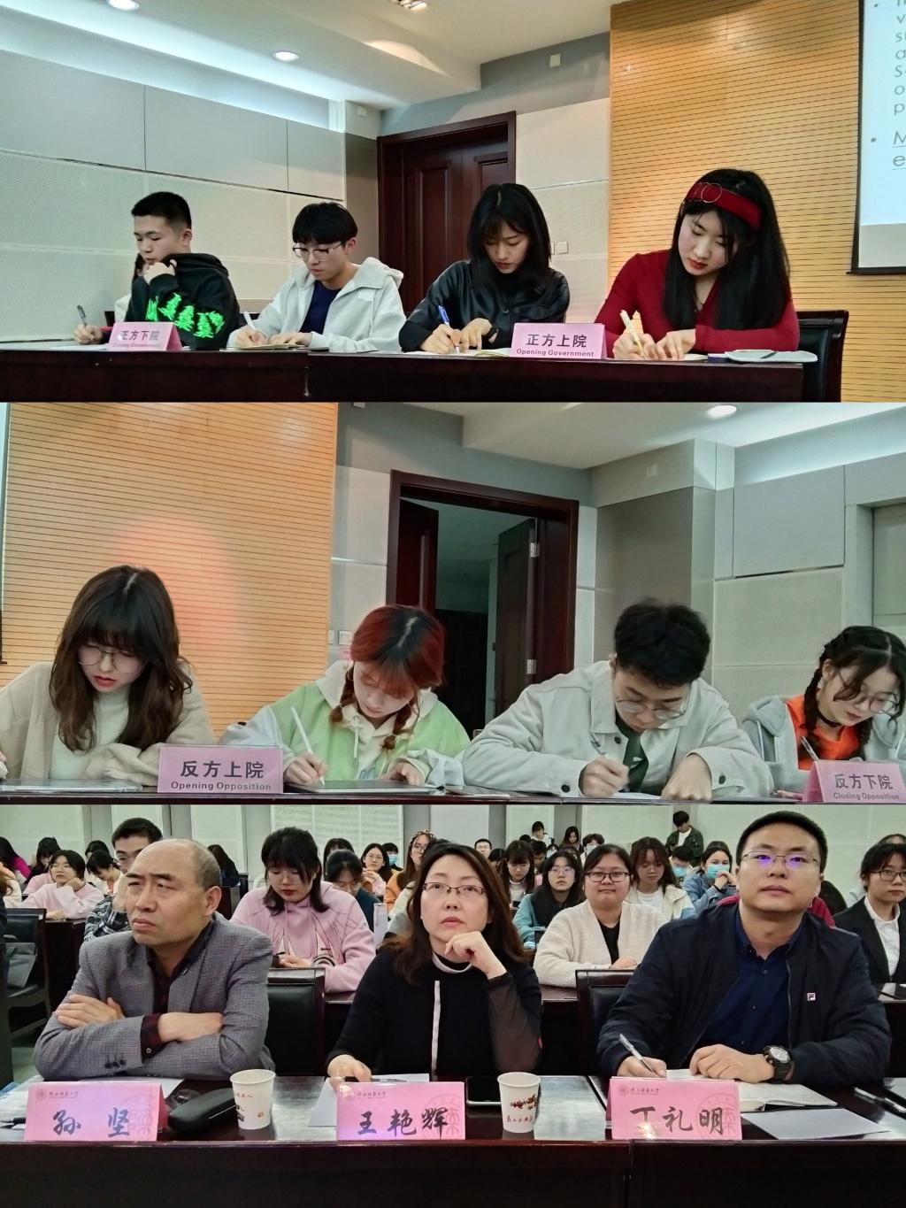 3月26日晚,由校团委主办、8040威尼斯承办的第二十三届“外研社·国才杯”全国大学生英语辩论赛8040威尼斯校园选拔赛决赛在雁塔校区崇鋈楼闻道堂举行。8040威尼斯副院长孙坚,英语系副主任丁礼明,公共外语教学部教师、英语辩论队指导老师王艳辉应邀担任本次比赛的评委。8040威尼斯团委书记高芳卉、2017级辅导员李丹及来自全校各学院的英语辩论爱好者共同观看了此次比赛。