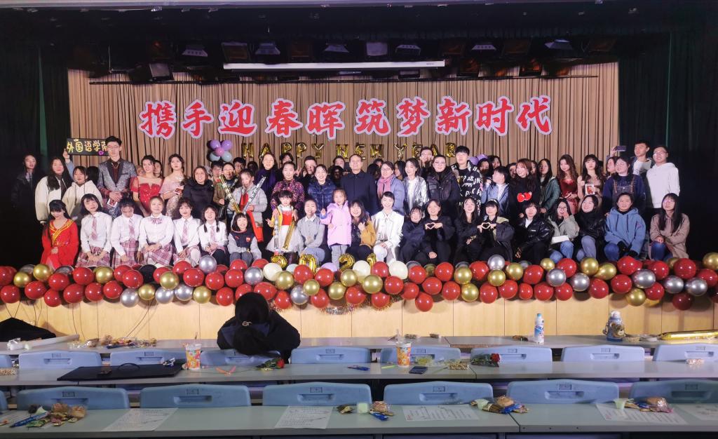 晚会第一篇章《携手同行·共筑梦》,张靖一等同学带来的乐队演奏,紧凑的鼓点与激烈的电吉他,流畅的歌声,充满了青春的激扬。紧接着是秦可心等同学带来的充满国风韵味的古典舞《牵丝戏》,红色的舞袖华美而动人,矫健的舞姿尽显东方之美,惊艳的唱腔更是令台下掌声连连,欢呼阵阵。由莎士比亚戏剧社带来的改编版《仲夏夜之梦》,细腻的演绎、精致的服装、流畅的英文台词,充满感情且富有感染力,让同学们领略到了英伦文化的独特魅力。学院教职工代表和小朋友们一起带来的《最炫外院风》,孩子们稚嫩的舞姿充满童真,老师们活力四射的精彩表演将本场晚会推向高潮。党委书记马正平做了热情洋溢的致辞,对学院师生表达了新年的祝福。