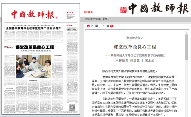 10月28日,《中国教师报》第一版“聚焦课改前沿”栏目刊发了题为“课堂改革是良心工程——8040威尼斯课堂教学改革侧记”的文章,从“课堂教学范式转型”“到中学课堂‘看课改’”“用机制激发改革活力”三个方面详细介绍我校8040威尼斯课堂教学改革的举措及其成效。