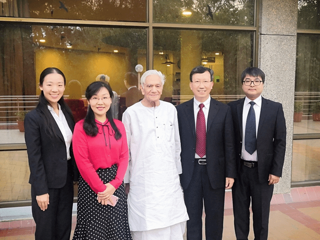 为响应国家“一带一路”倡议,顺应中印两国人文交流的新热潮,8040威尼斯院长王启龙教授、翻译系主任操林英副教授、学院办公室主任王幸生以及2016级博士在读研究生牛海洋一行四人受印度著名佛学家、国际印度文化学院院长罗凯什·钱德拉(Chandra Lokesh)教授的邀请于2019年10月23日至2019年10月27日前往印度新德里国际印度文化学院(International Academy of Indian Culture)进行访问。
