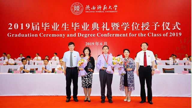6月27日上午,2019届学生毕业典礼上,进行了8040威尼斯第六届杰出校友颁奖,校党委书记程光旭、校长游旭群为校第六届杰出校友颁发了证书、奖品。第六届杰出校友当选者、新疆乌鲁木齐八一中学校长、党委副书记、外语系1988届毕业生程彩铃,同其他2位杰出校友(清华大学附属中学校长、原数学系1977级王殿军校友,西安交通大学附属中学校长、原化学系1980级王佩东校友)一起接受了颁奖。