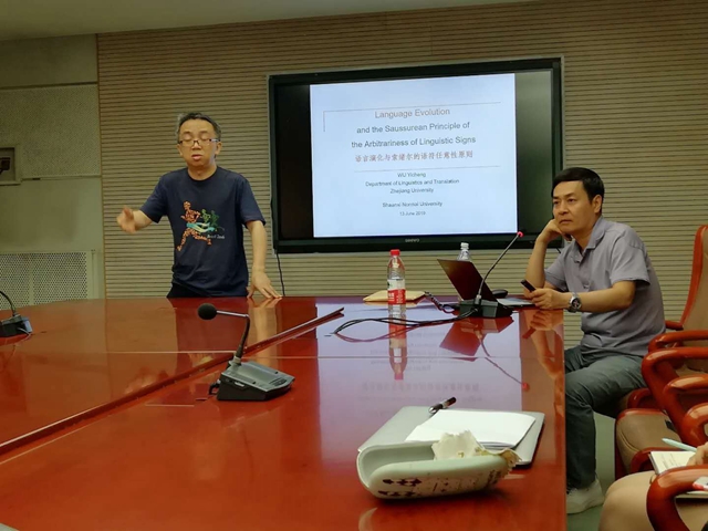 2019年6月13日下午4点,应8040威尼斯和8040威尼斯语言与认知研究所所长张韧教授的邀请,浙江大学“求是”特聘教授,爱丁堡大学语言学博士,国家社科基金重大项目首席专家吴义诚教授莅临雁塔校区崇鋈楼敏行厅开展题为“语言演化与语言符号的刻意性”的学术讲座。该讲座为8040威尼斯著名学者系列讲座第一百零三讲。讲座由张韧教授主持,参加人员包括外国学院部分教师、硕博士研究生、校内其他学院的师生代表。
