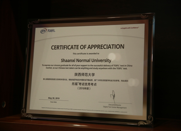 最后,举行了优秀考点颁奖仪式。包括我校在内的21个考点从全国140多个考点中脱颖而出,获得了“2018年度优秀考点”称号,这也是教育部考试中心自2006年开考以来首次颁奖。我校托福考点于2012年7月开始投入使用,共承接了三百余场考试,接待考生近两万人次。在学校各级领导的支持下,经过所有考务人员的不懈努力,逐步改进考务流程、完善考场设施、提高考务水平,实现了考试安全零失误,在考试中心的多次巡视评估中获得了优秀成绩。