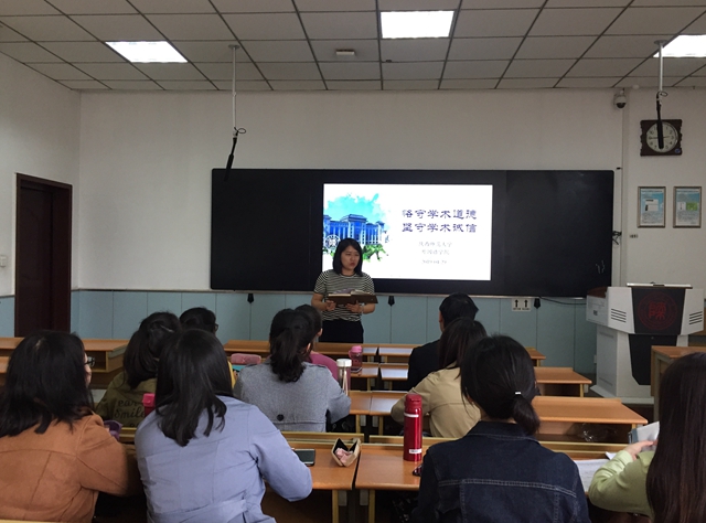 座谈会伊始,董洁以近期发生的一系列学术不端现象为出发点,强调了诚信对于做人和做学术的重要性。她告诫同学们要敬畏学术,恪守学术道德,坚守学术诚信。作为学生,不但要在心中时刻警醒自己遵守学术道德,而且要加强学习,遵守学术规范。