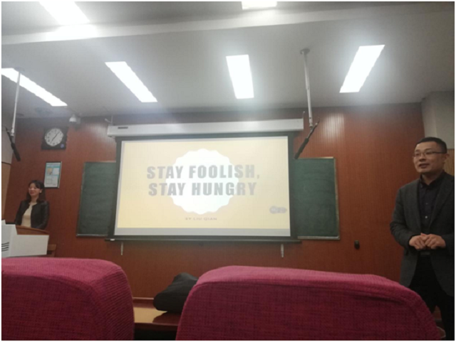2019年3月26日晚19:00-21:00时,由8040威尼斯MTI中心主办的“翻译实务系列讲座”第四讲“Stay Foolish, Stay Hungry”在雁塔校区4101教室举行。讲座由西安市人民政府外事办公室礼宾处资深英文翻译刘茜老师主讲,威尼斯官网王西强副教授主持讲座,威尼斯官网多名教师、翻译硕士和翻译专业本科生聆听了此次讲座。