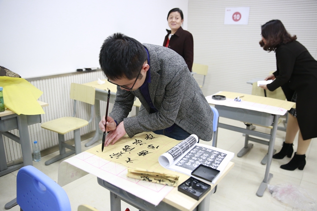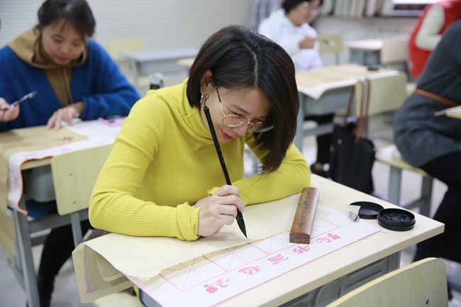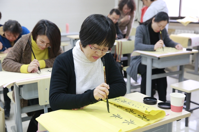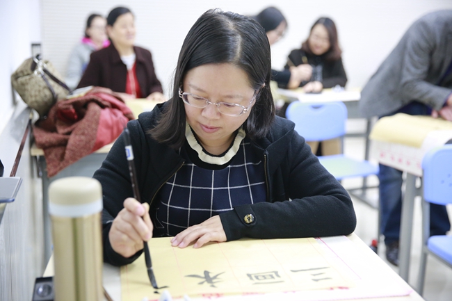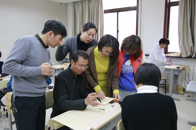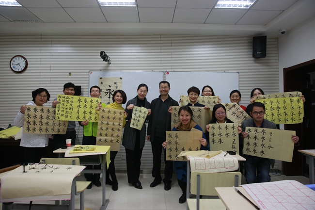 最后,在闫老师的示范指导下,各位老师开始亲身体味书法的魅力。这次书法活动拓宽了老师们对书法的视野,提高了老师们对书法艺术的认知与鉴赏能力,也有利于传播中国传统文化,为引领教育学生打下了更坚实的基础。