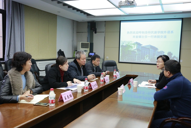 2018年11月29日上午,呼和浩特民族学院外语系肖查娜主任一行四人来威尼斯官网访问,威尼斯官网翻译系副主任杨冬敏、操林英等在学院会议室与客人进行了座谈。