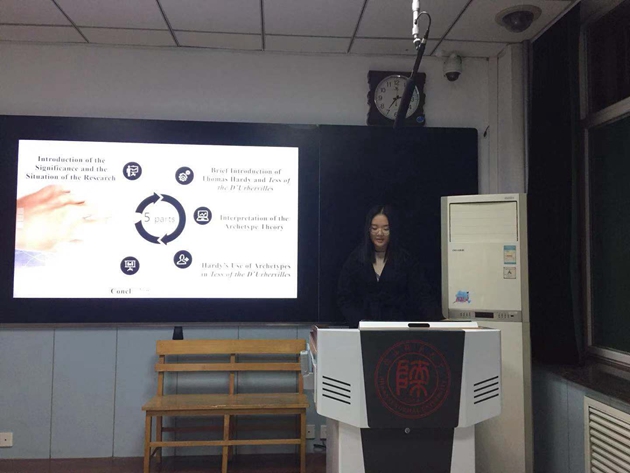 此次论坛分设两个场次,文学分论坛于4105教室召开,由戴琨、郭英杰老师担任评委。语言学、翻译、学科教学分论坛于4405教室召开,由李艳、高芬、杨冬敏老师担任评委。来自各年级的14位参赛选手在比赛中畅谈自己在学术方面的见解,主题明确,准备充分,语言流畅,期间评委老师对选手进行提问,并对每位选手的论文都提出了建设性的建议。活动最后,郭英杰、李艳老师分别对本次论坛各位选手的表现进行点评,并教导同学们“良药苦口利于病,忠言逆耳利于行”,当下应虚心受教,认真钻研,向更高的目标前进。