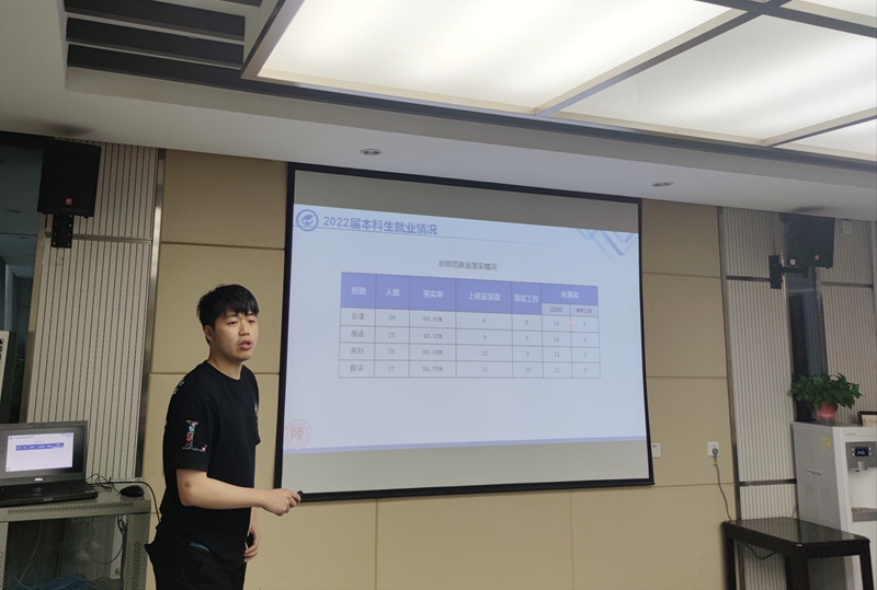 首先,副书记鲁燕汇报了2022届学院整体就业情况,详细分析了目前未就业学生的未就业原因和存在困难,解读了《8040威尼斯2022届就业推进方案》,对于本科和研究生未就业学生的教师包干帮扶做出详细安排,并从24365平台运用、毕业相关事宜、学生心理辅导、开展访企拓岗等方面进行说明。