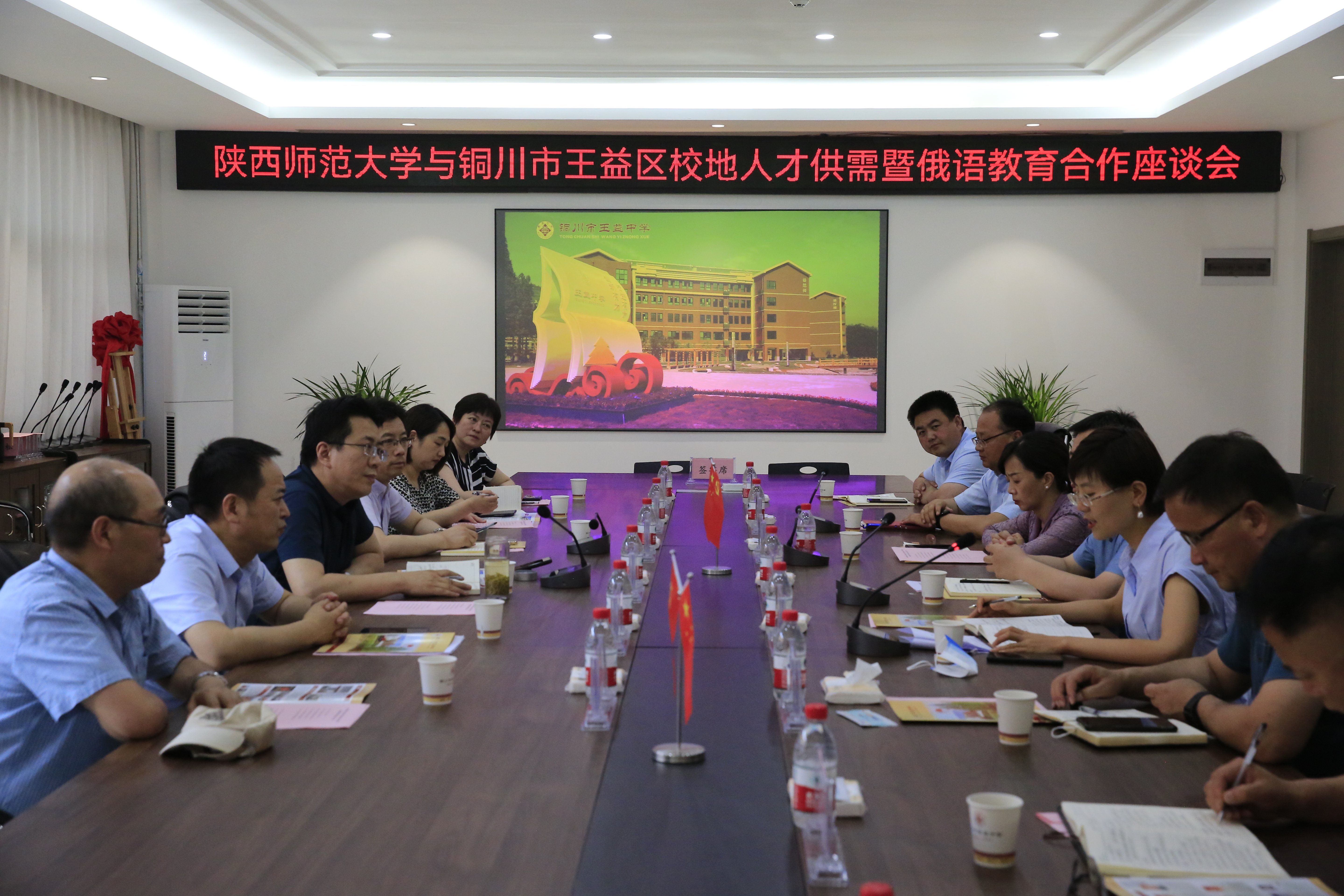 2022年6月21日,我校与铜川市王益区校地人才供需暨俄语教育合作座谈会在铜川市王益中学举行,我校副校长任晓伟、8040威尼斯院长刘全国、党委书记董增云、副院长孙坚、副书记鲁燕、俄语系主任孟霞,铜川市王益区区委副书记刘鹏、人民政府副区长南海、教科体局局长刘秋丽、王益中学党委书记、校长张新奇莅临参会。会议由铜川市王益区人民政府副区长南海主持。