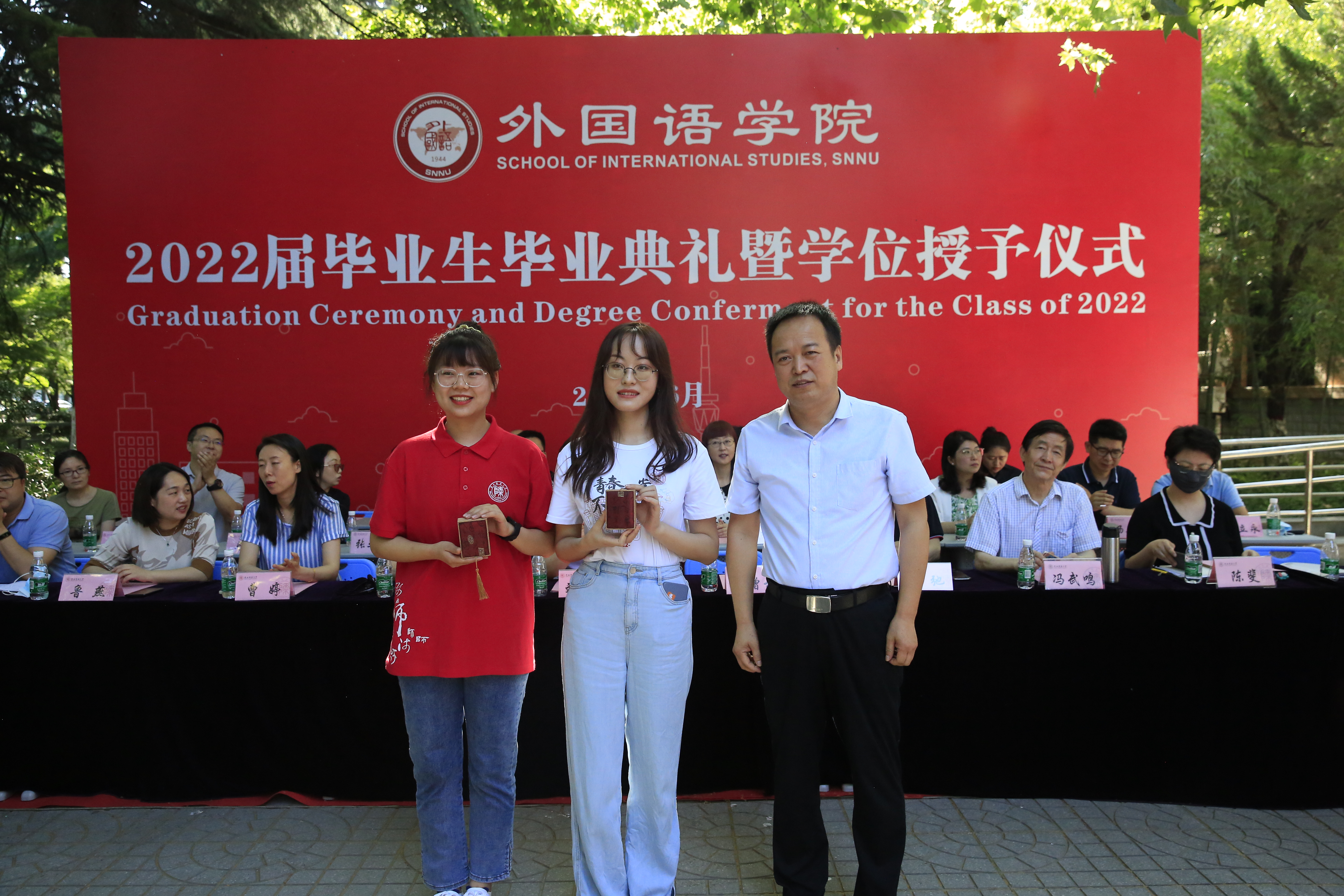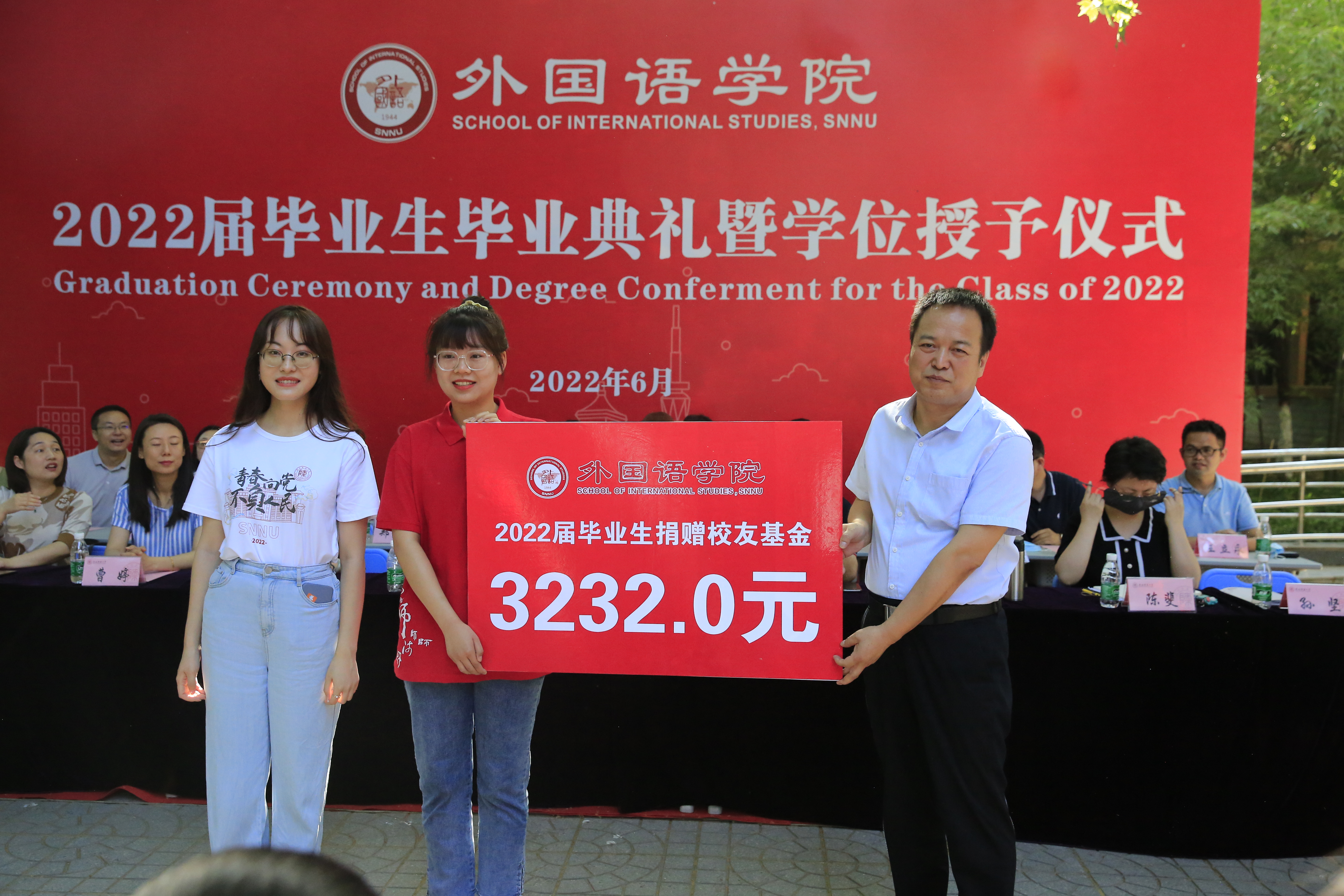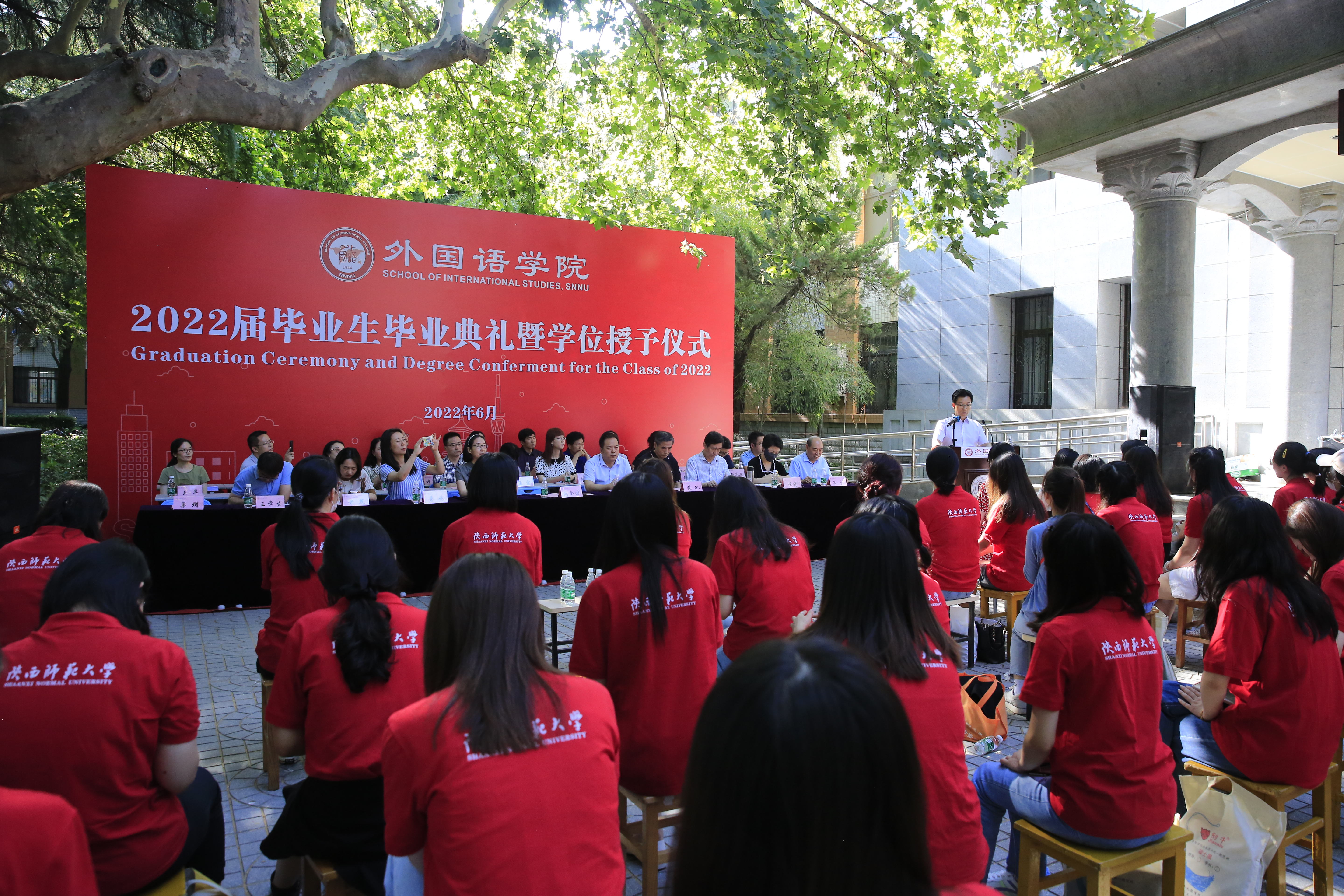 6月24日上午,威尼斯官网2022届学生毕业典礼暨学位授予仪式在教学六楼门前广场隆重举行,典礼同时在腾讯会议平台直播。8040威尼斯院长刘全国教授、党委书记董增云、学院前党委书记张弛、冯武鸣、副院长吕敏宏、曹婷、王幸生、党委副书记鲁燕、公共外语教学部主任马珂、英语系主任朱冬怡、副主任王立永、丁礼明、翻译系主任操林英、副主任杨冬敏、俄语系主任孟霞、副主任王翠、法语系副主任乔溪、日语系副主任许赛锋、学位委员会成员郑元会、张亚婷、魏军梅、办公室主任陈斐、语言语音教学中心主任邢俊升、团委书记李丹,以及全体辅导员出席典礼。典礼由8040威尼斯副院长孙坚教授主持。威尼斯官网2022届毕业生在学院领导和老师的共同见证下,拨穗正冠,开启人生新的旅程。