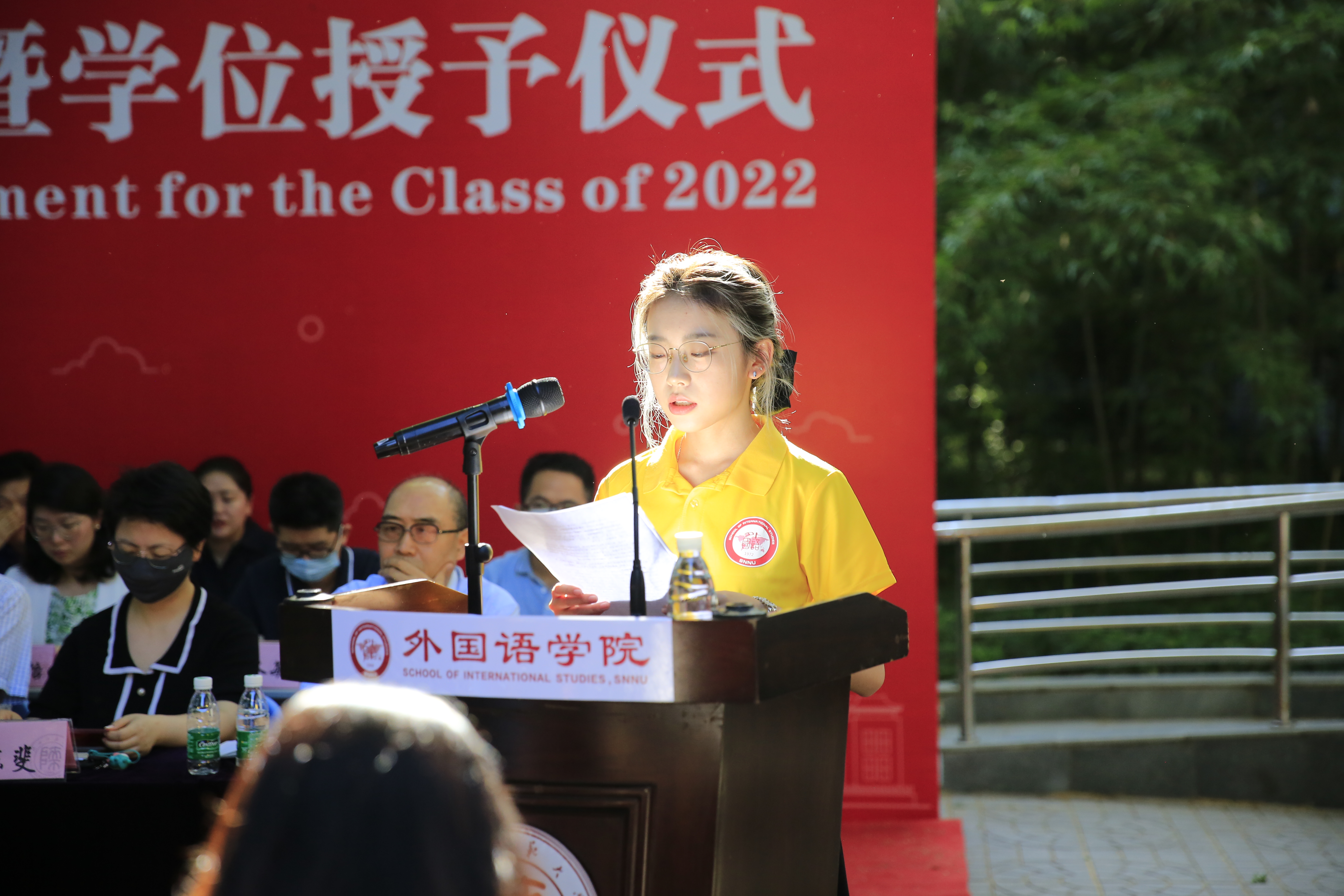本科师范生代表、英语(卓越)班张国正同学表达了对关心帮助学生的学院领导、老师和亲友衷心的感谢,并表示所有毕业生将带着启程时厚重的责任和出发时满怀的信心,在教育报国的道路上往深处扎根、向高处生长。