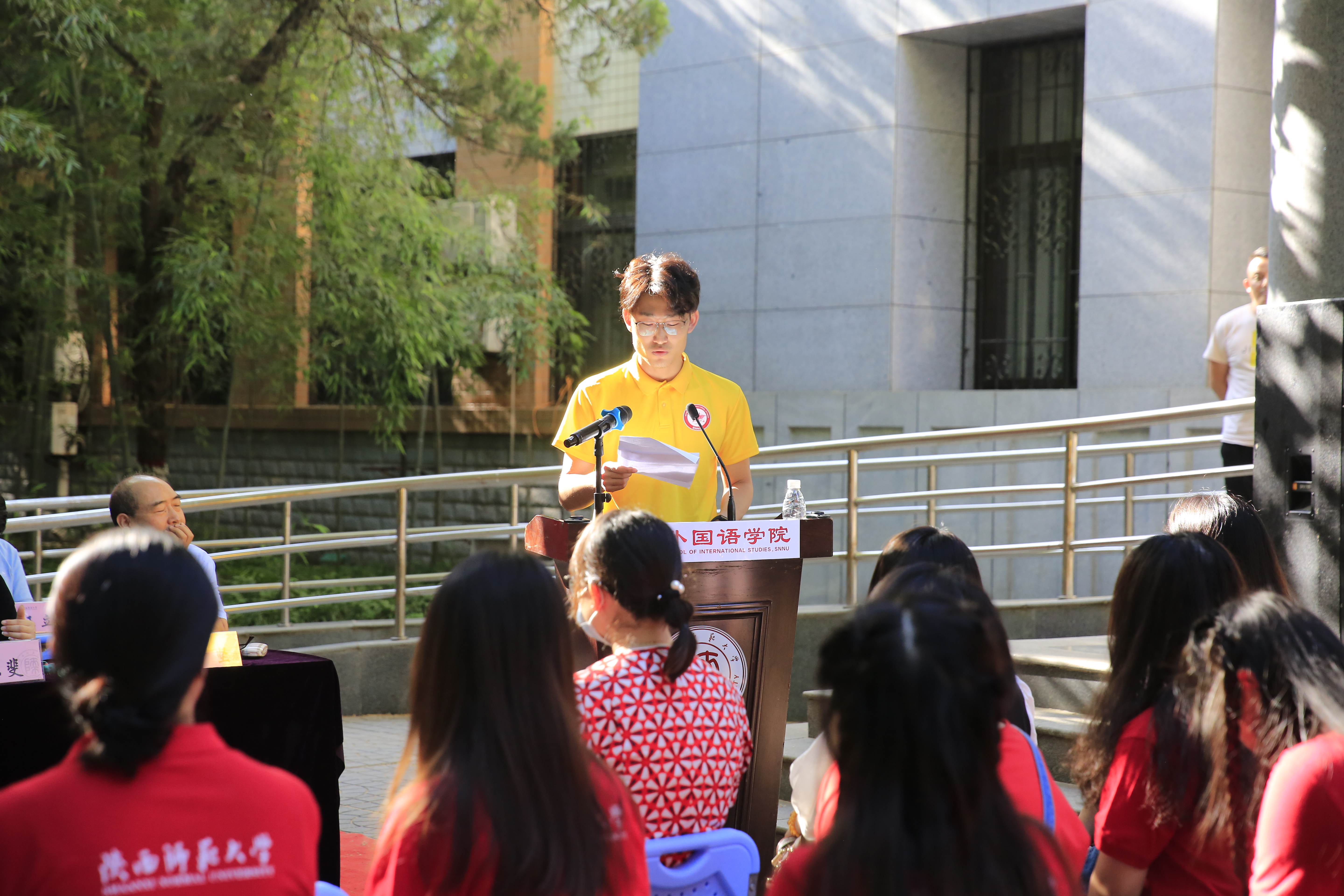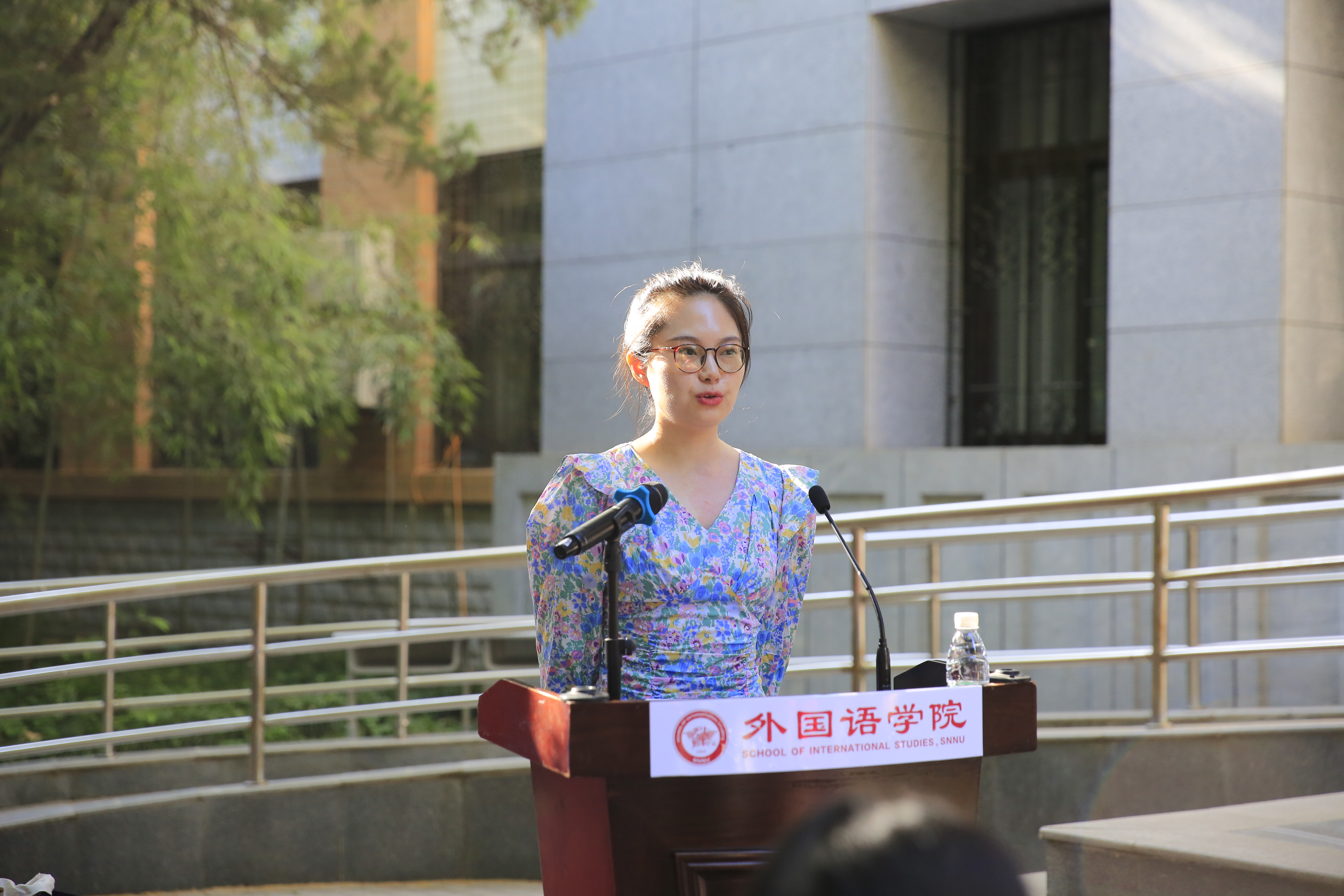 教师代表、翻译系教师巢玥博士代表全院教师向全体毕业生表示热烈的祝贺。巢玥勉励即将走上工作岗位的同学们要坚守西部红烛精神和为中华民族伟大复兴贡献语言力量的初心,为基础教育和经济发展贡献外院人的力量。