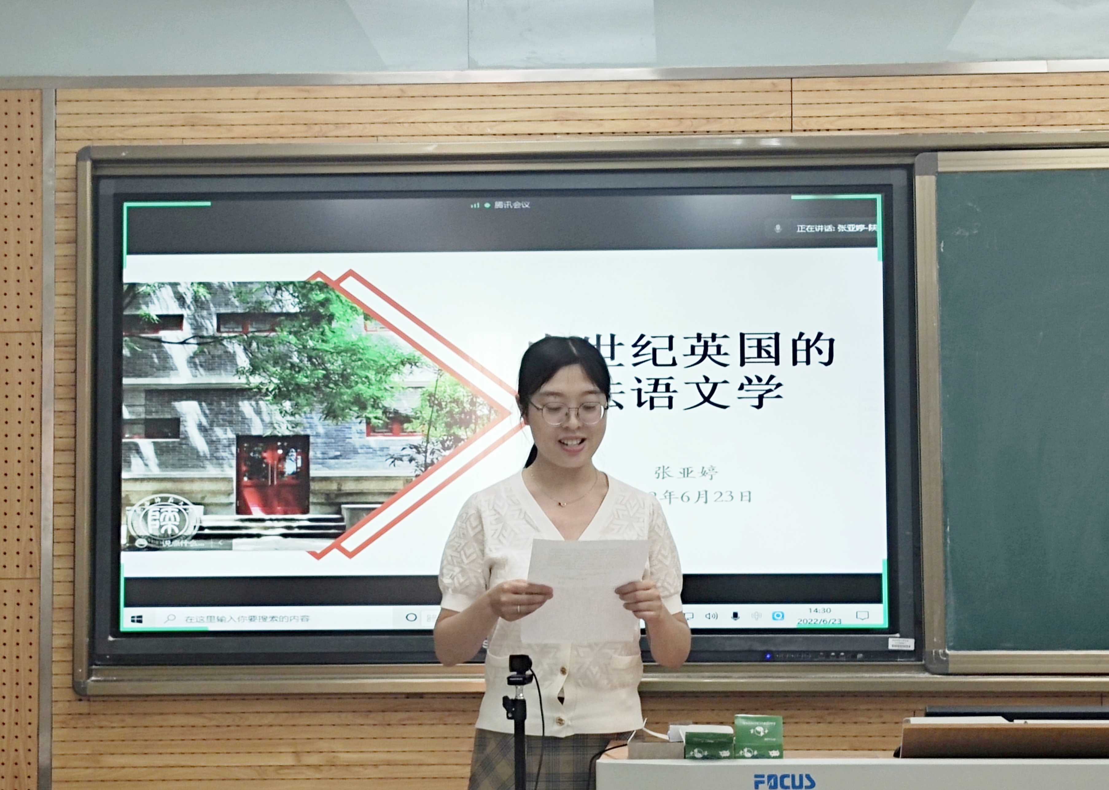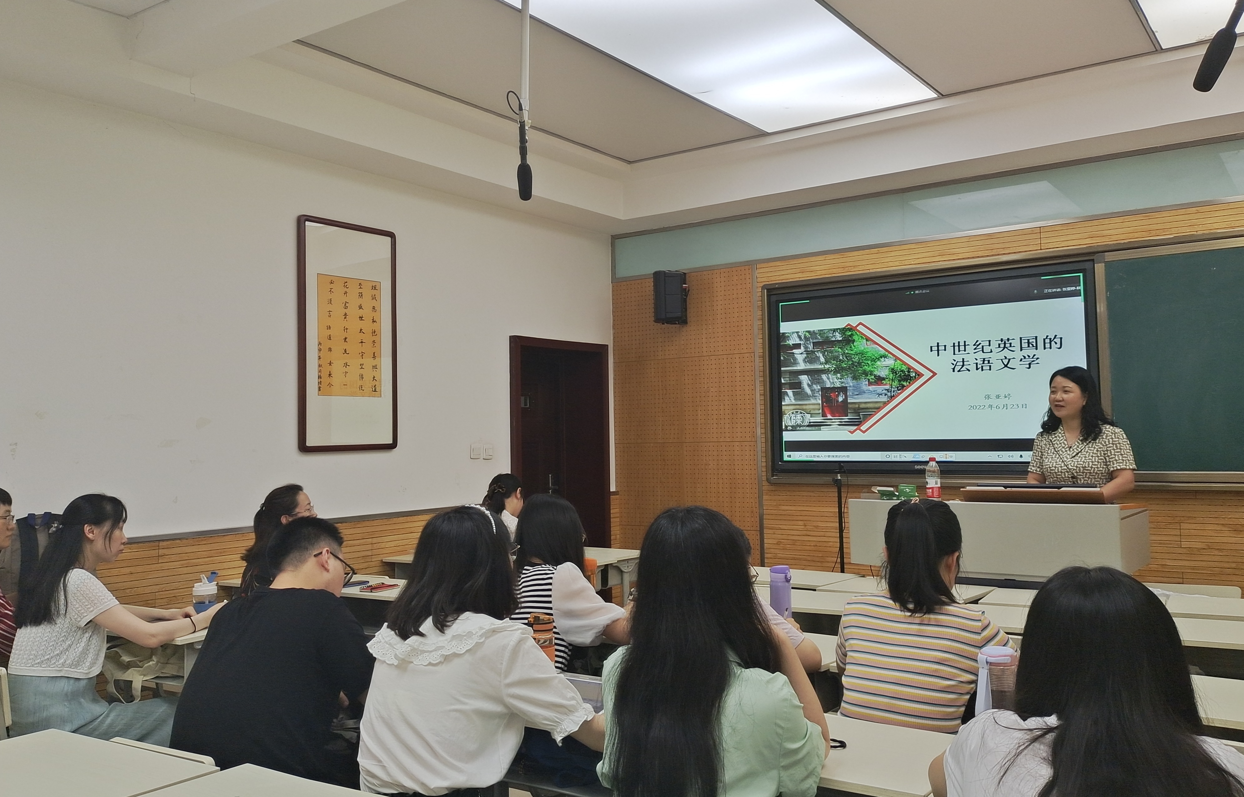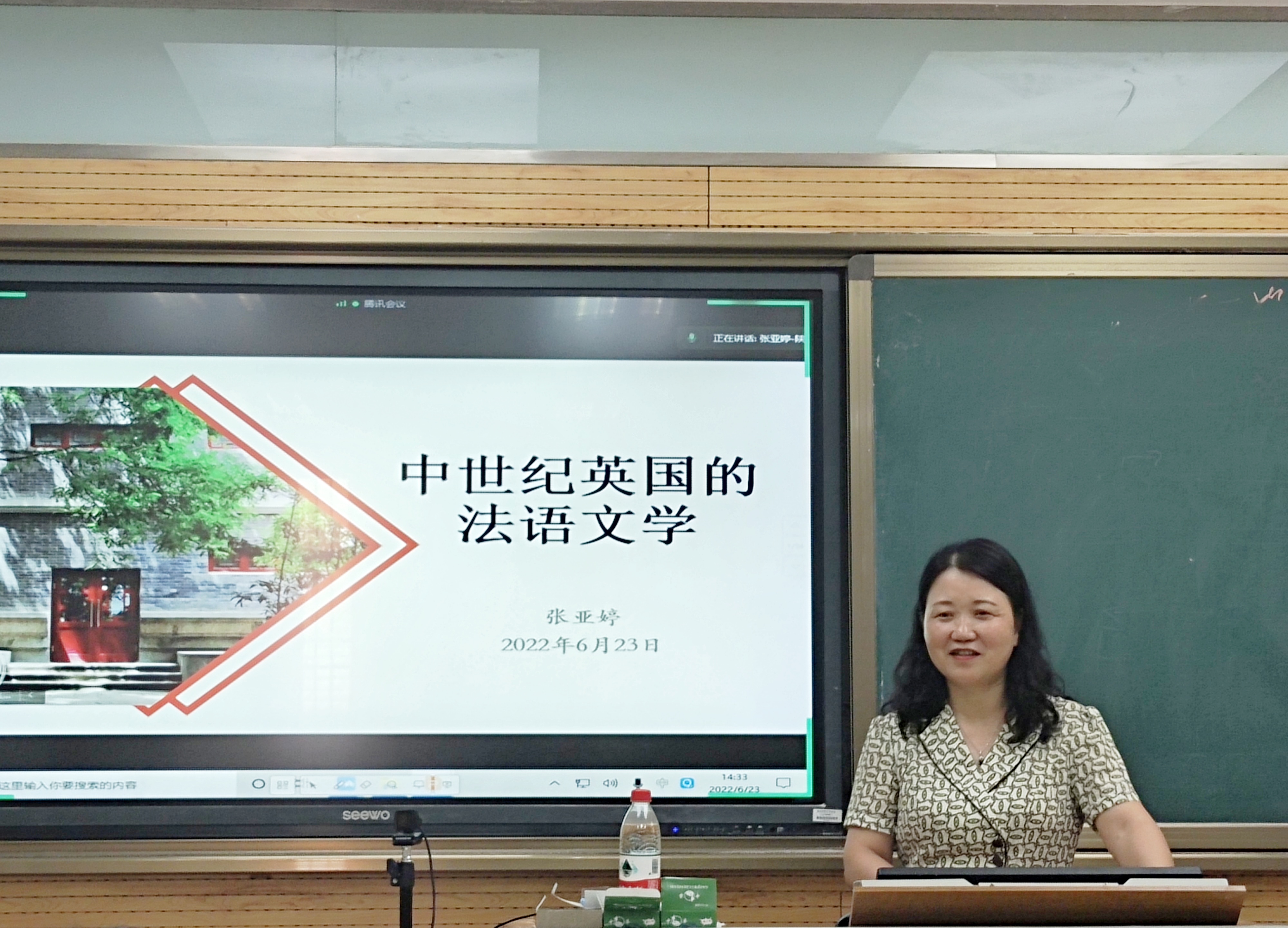 为推进外国文学专业教学水平发展,提高学生文学素养、创新意识、写作与表达能力。6月23日14点30分,8040威尼斯学院英国文学研究团队于教学五楼5108开展了题为“中世纪英国的法语文学”的专题讲座。张亚婷教授担任主讲人,原玉薇博士主持讲座,8040威尼斯教师及文学专业研究生参与讲座。