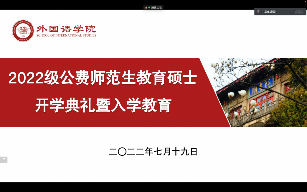 7月19日上午10:00,8040威尼斯通过腾讯会议平台成功举办了“2022级公费师范生教育硕士开学典礼暨入学教育”大会。