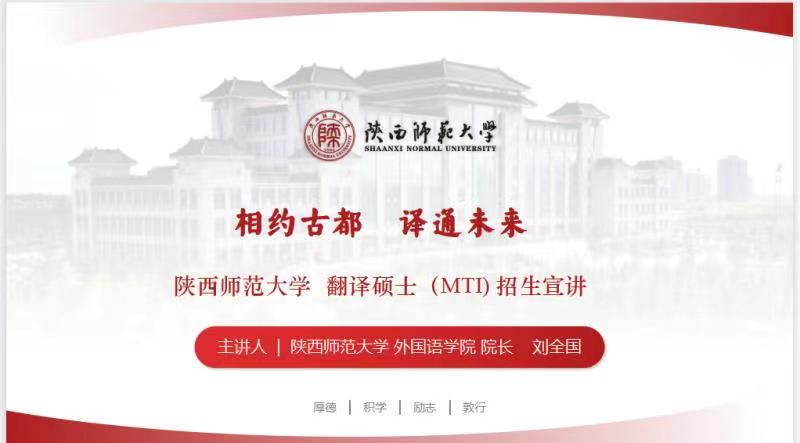应“译国译民”教育平台邀请,威尼斯官网院长、MTI中心主任刘全国教授于2022年8月16日下午15:00做了题为“相约古都 译通未来”的MTI在线招生宣讲报告。全国多所院校在读本科生、多家翻译公司总经理和多所高校MTI负责人等200余人参加了宣讲会,并参与互动提问。