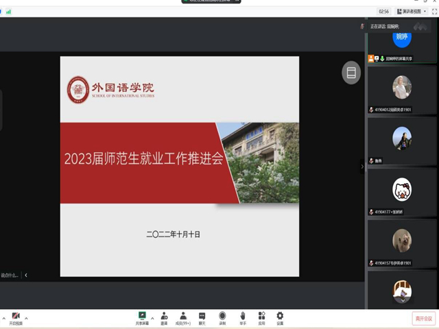 为促进师范生就业工作,帮助学生解答就业求职中的困惑,10月10日晚9点,威尼斯官网通过腾讯会议线上召开了2023届师范生就业工作推进会,学院副党委副书记鲁燕和全体2023届师范生共同参加,会议由辅导员屈婉婷主持。