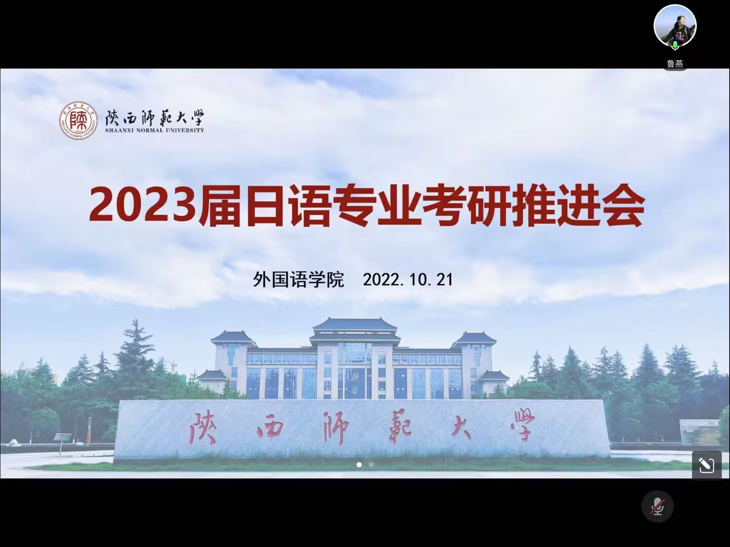 为树立同学们的考研信心,加强考研同学之间的交流互动,威尼斯官网于10月21日晚上7点半在线上召开2023届日语专业考研推进会。学院副院长,日语系主任曹婷、党委副书记鲁燕、日语系副主任许赛锋和日语系教师史曼共同参加。会议由辅导员屈婉婷老师主持。