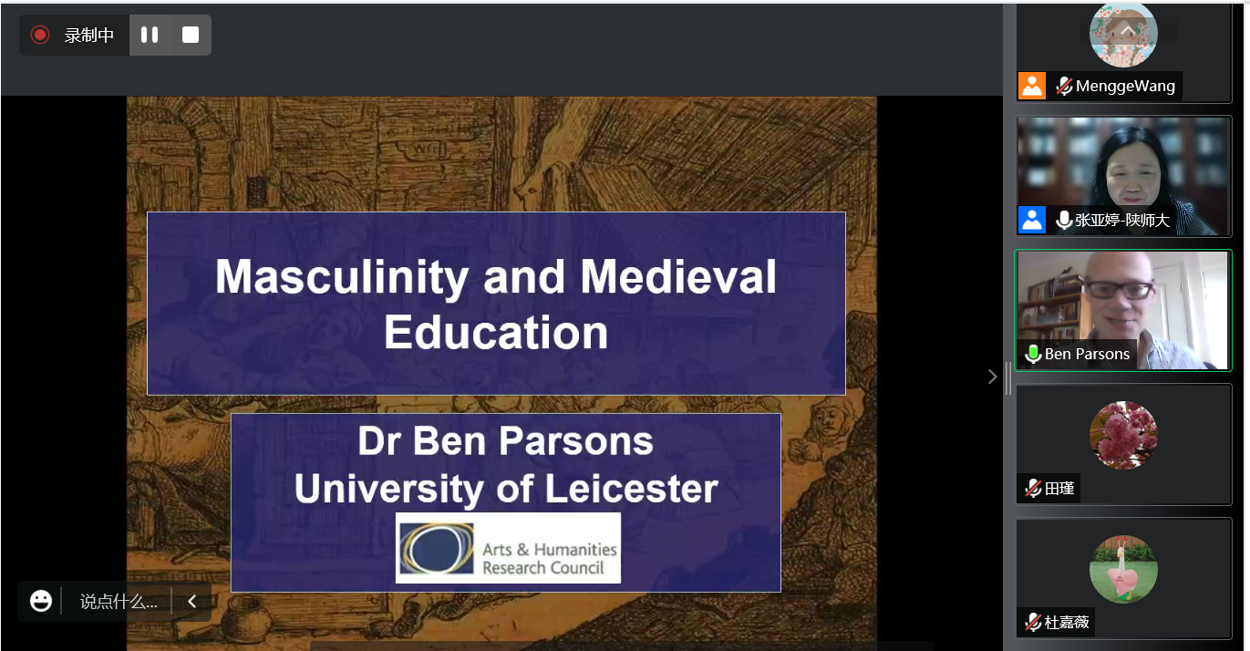 2022年12月6日晚7点,威尼斯官网通过腾讯会议平台成功举办了以“中世纪教育中的男性气质培养”为主题的第一百五十场著名学者系列讲座。本次讲座由英国莱斯特大学文学与艺术学院本·帕森斯教授主讲,威尼斯官网张亚婷教授主持,近200名校内外师生参加了讲座。