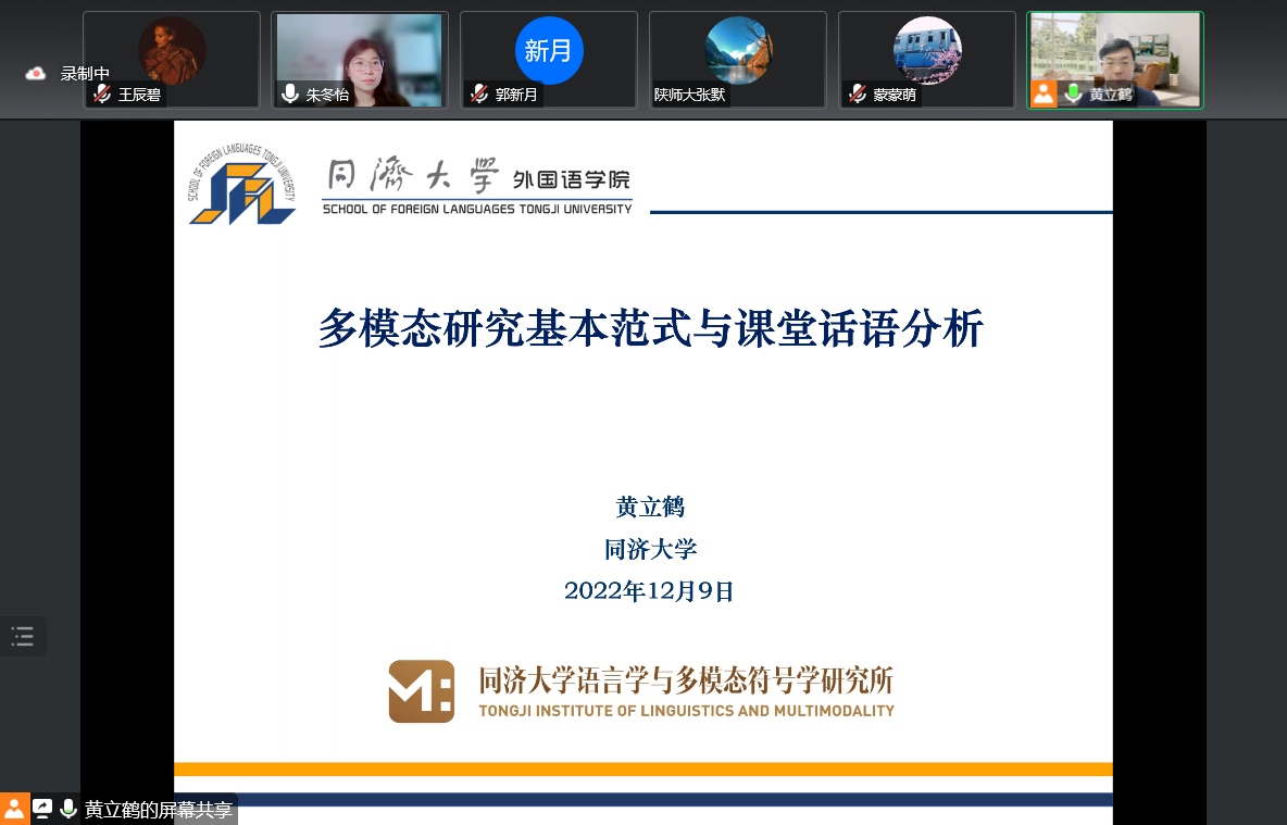 2022年12月9日下午15:00,威尼斯官网于云端平台成功举办了以“多模态研究基本范式与课堂话语分析”为主题的一流本科专业建设论坛,本次论坛由同济大学黄立鹤副教授主讲,威尼斯官网朱冬怡副教授主持,近200名校内外师生参与了交流讨论。
