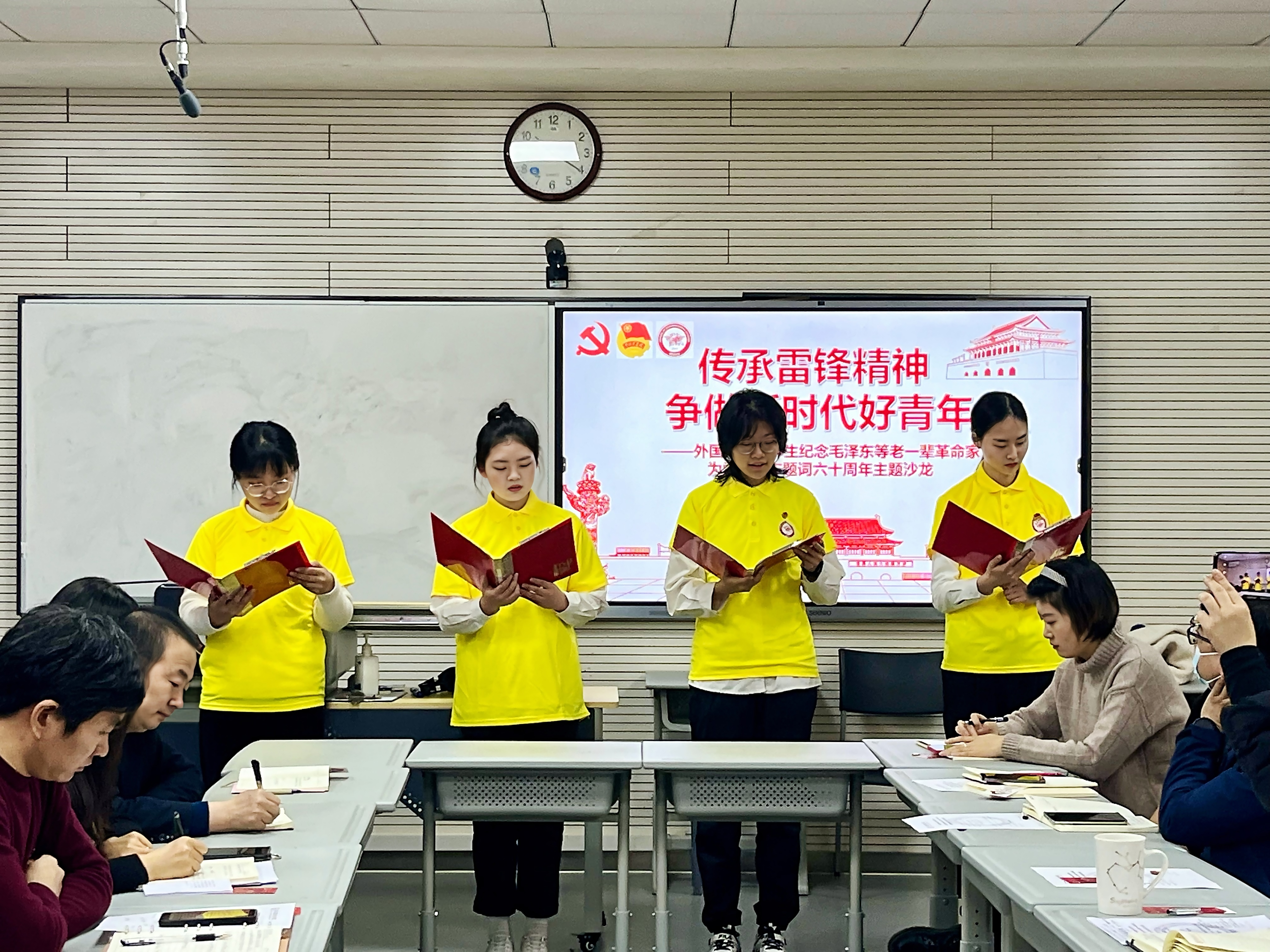 为纪念毛泽东等老一辈革命家为雷锋同志题词六十周年,进一步学习贯彻党的二十大精神,传承和弘扬新时代雷锋精神。2月28日,8040威尼斯师生纪念毛泽东等老一辈革命家为雷锋同志题词六十周年主题沙龙于教学六楼6314召开,8040威尼斯党委书记董增云、学院行政党支部成员、8040威尼斯学工干部及学生代表共30余人参与。学院党委副书记鲁燕主持。