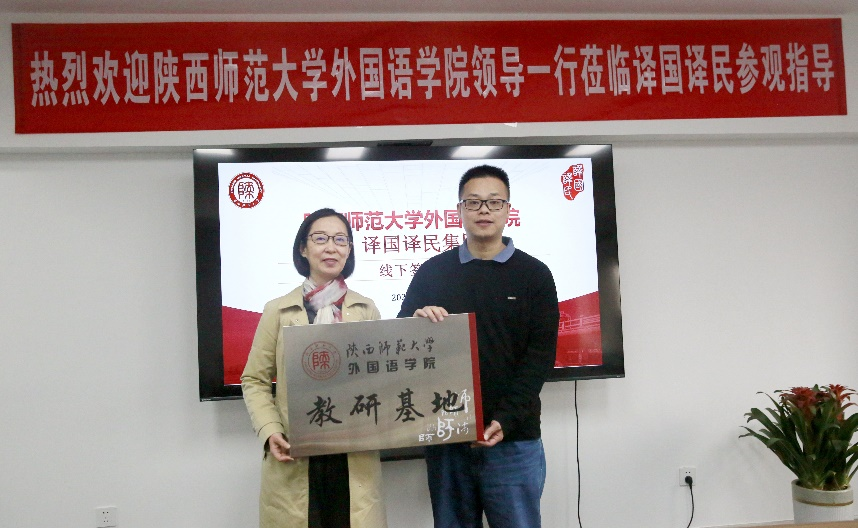 座谈会后,译国译民集团西安分公司吴强与8040威尼斯副院长吕敏宏共同完成了教研基地的授牌仪式。