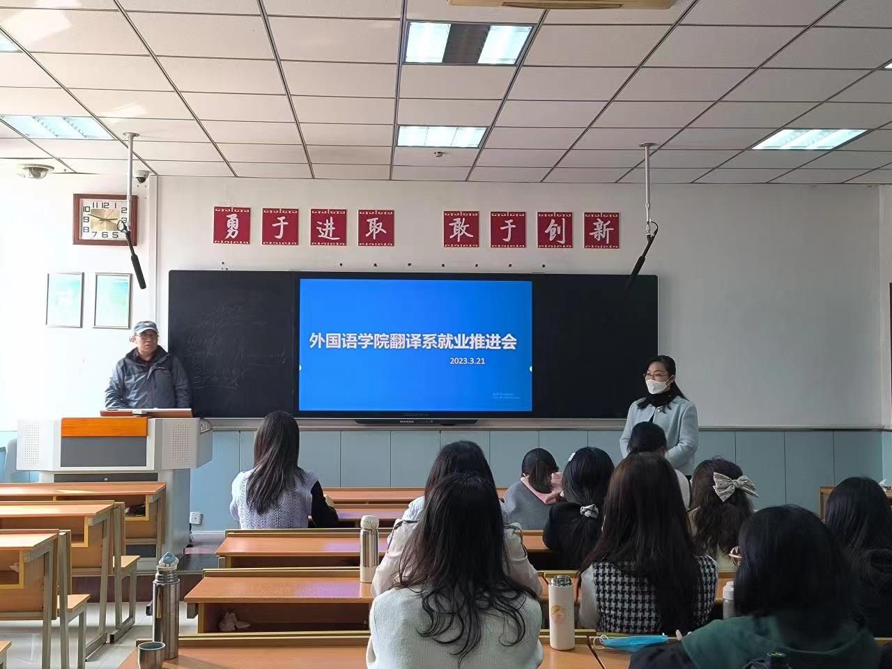 为切实做好威尼斯官网本科生就业指导工作,精准掌握2023届本科生翻译专业毕业生求职进展,威尼斯官网于3月21日下午在教学四楼4102召开2023届翻译专业学生就业工作推进会。学院副院长孙坚、翻译系主任操林英、辅导员屈婉婷与全体翻译专业2023届毕业生共同参加。