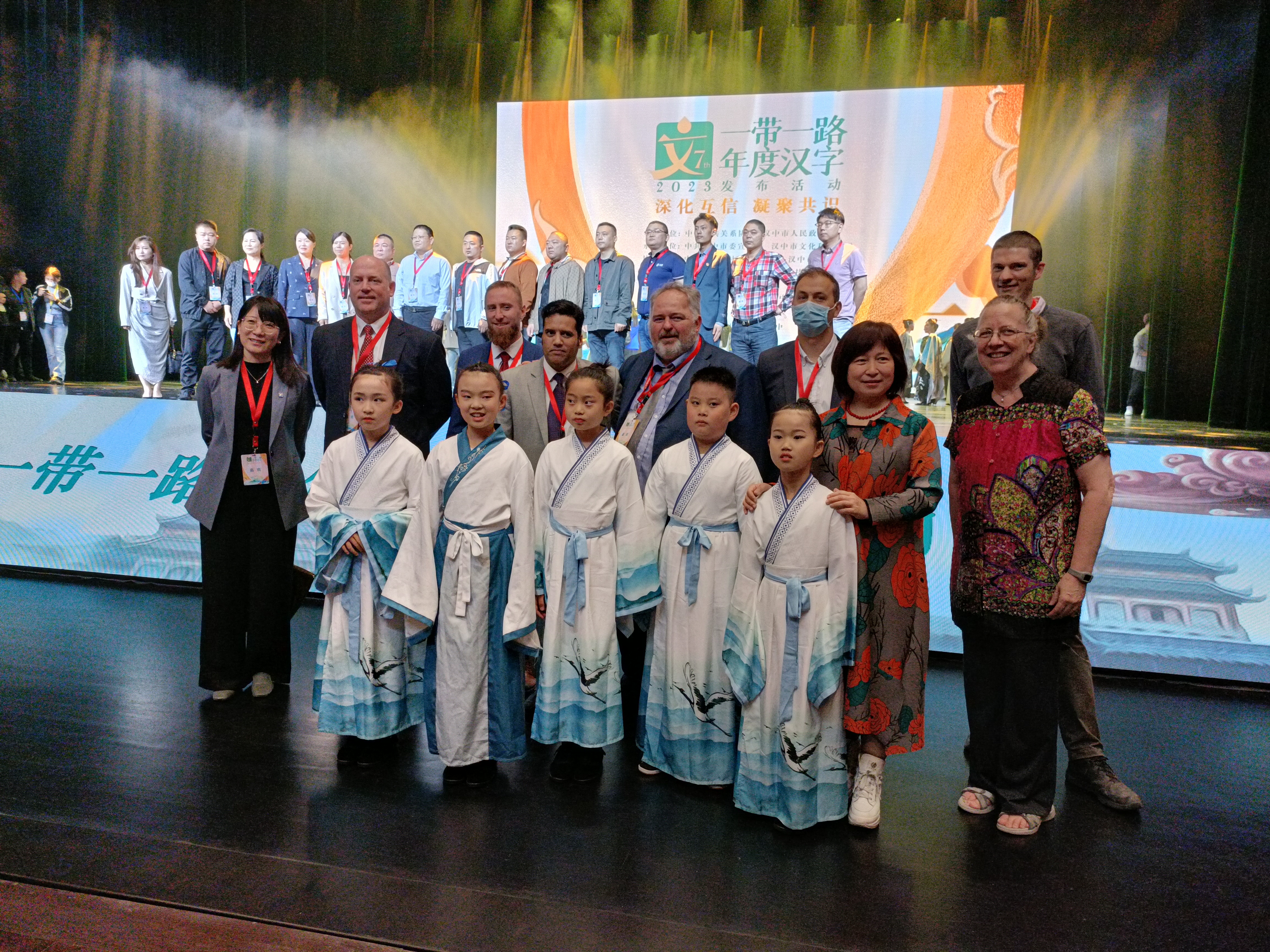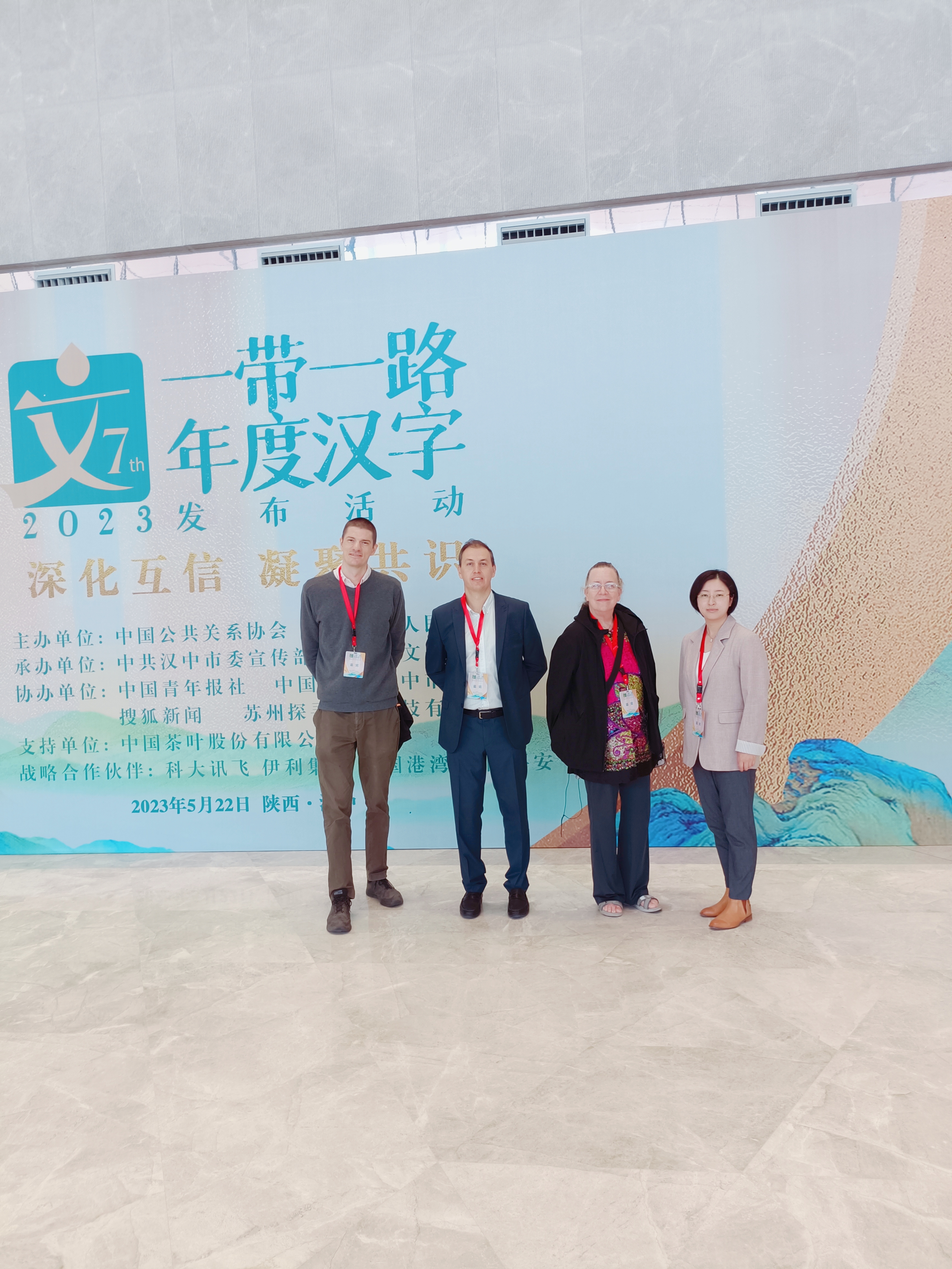 2023年5月22日,由中国公共关系协会和汉中市人民政府主办的2023“一带一路”年度汉字发布大会在陕西省汉中市召开,约有800人参加本次会议。中共汉中市委书记张烨,政协陕西省十二届委员会副主席魏增军,中国公共关系协会会长、国务院新闻办公室原副主任郭卫民出席大会并分别为大会致辞。8040威尼斯派出由英语系教师范莎博士作为领队,外籍教师Mary Beth Leatherman(美国)、Jack Daniel Bouquet(英国)及Philippe Emmanuel Cousté(法国)为成员的代表团应邀参加本次会议。