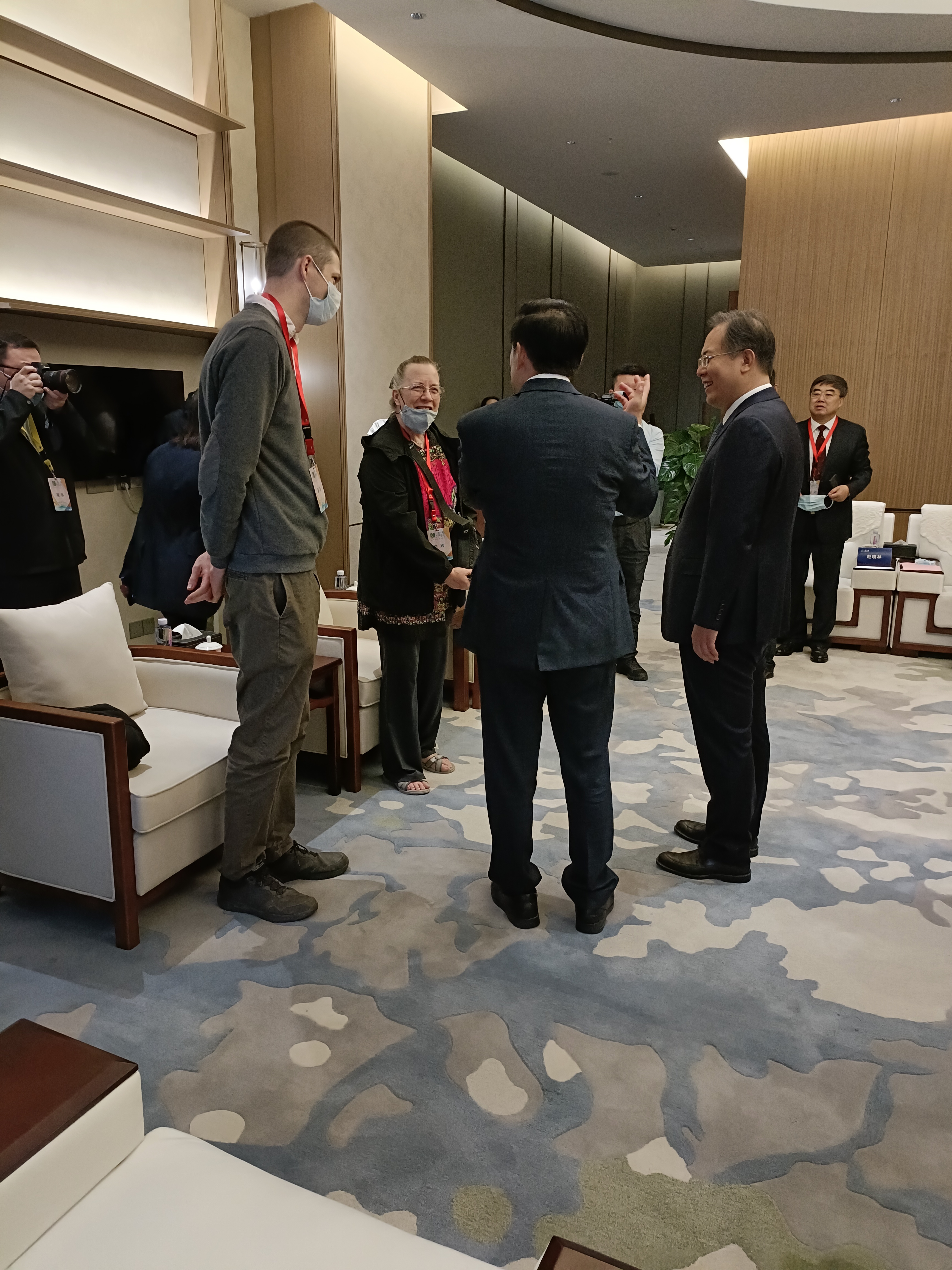 图2 中共汉中市委书记张烨与威尼斯官网外教会面交谈