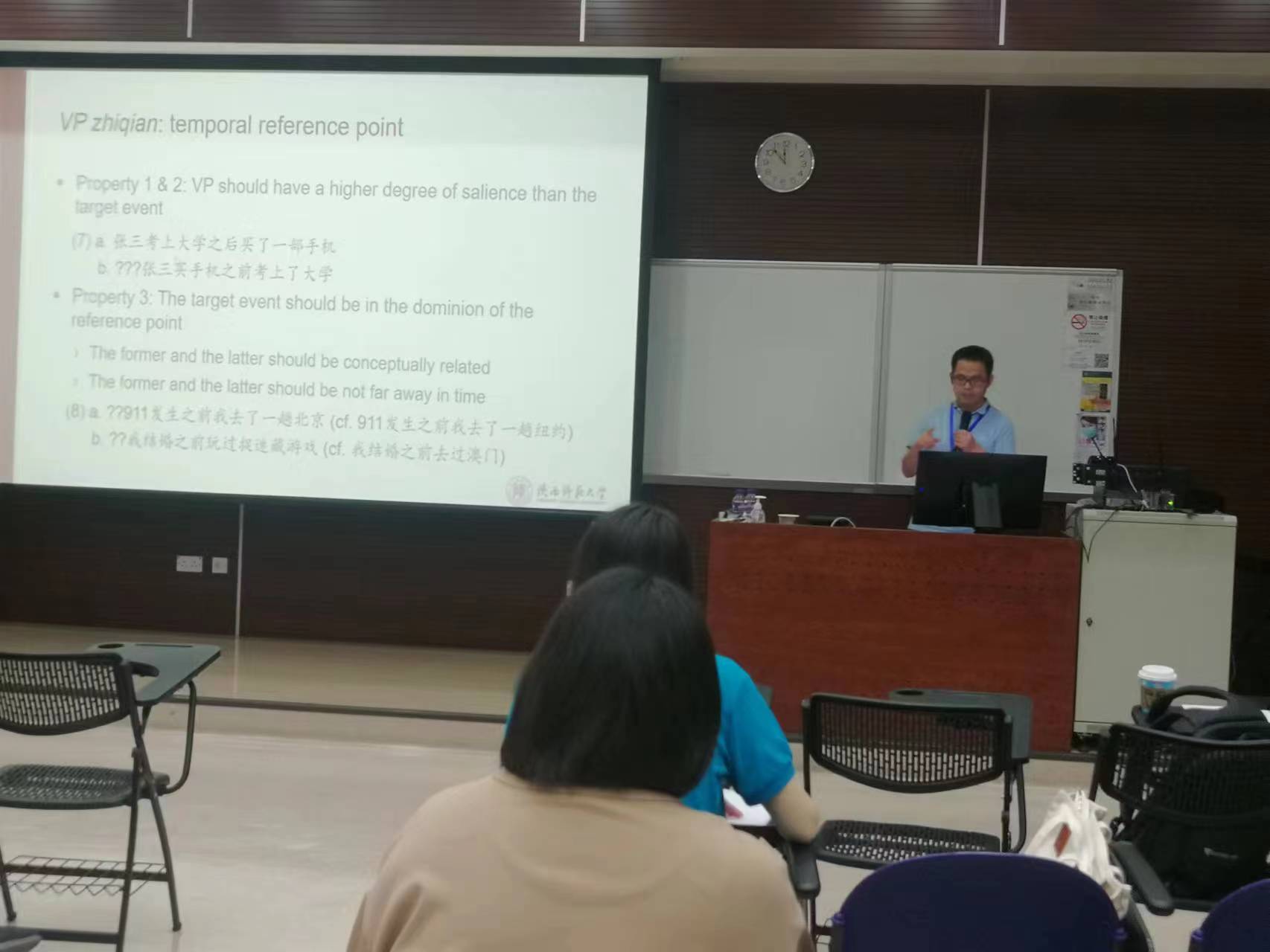 8040威尼斯张韧教授(第三作者)、王立永副教授(第一作者)和本科生冯奕嘉同学(第二作者)应邀参加了本次会议,并宣读题为“When meiyou does not negate: A cognitive analysis of VP zhiqian and meiyou VP zhiqian in Mandarin Chinese”的会议论文。论文以认知语法中的认知参照点模型和基线/加工模型为理论框架,分析了“没有”所带来的羡余否定的概念生成机制,并论证了“VP之前”和“没有VP之前”不同分布的语义限制条件。石定栩教授等与会学者就论文的观点予以肯定并提出了中肯的建议。