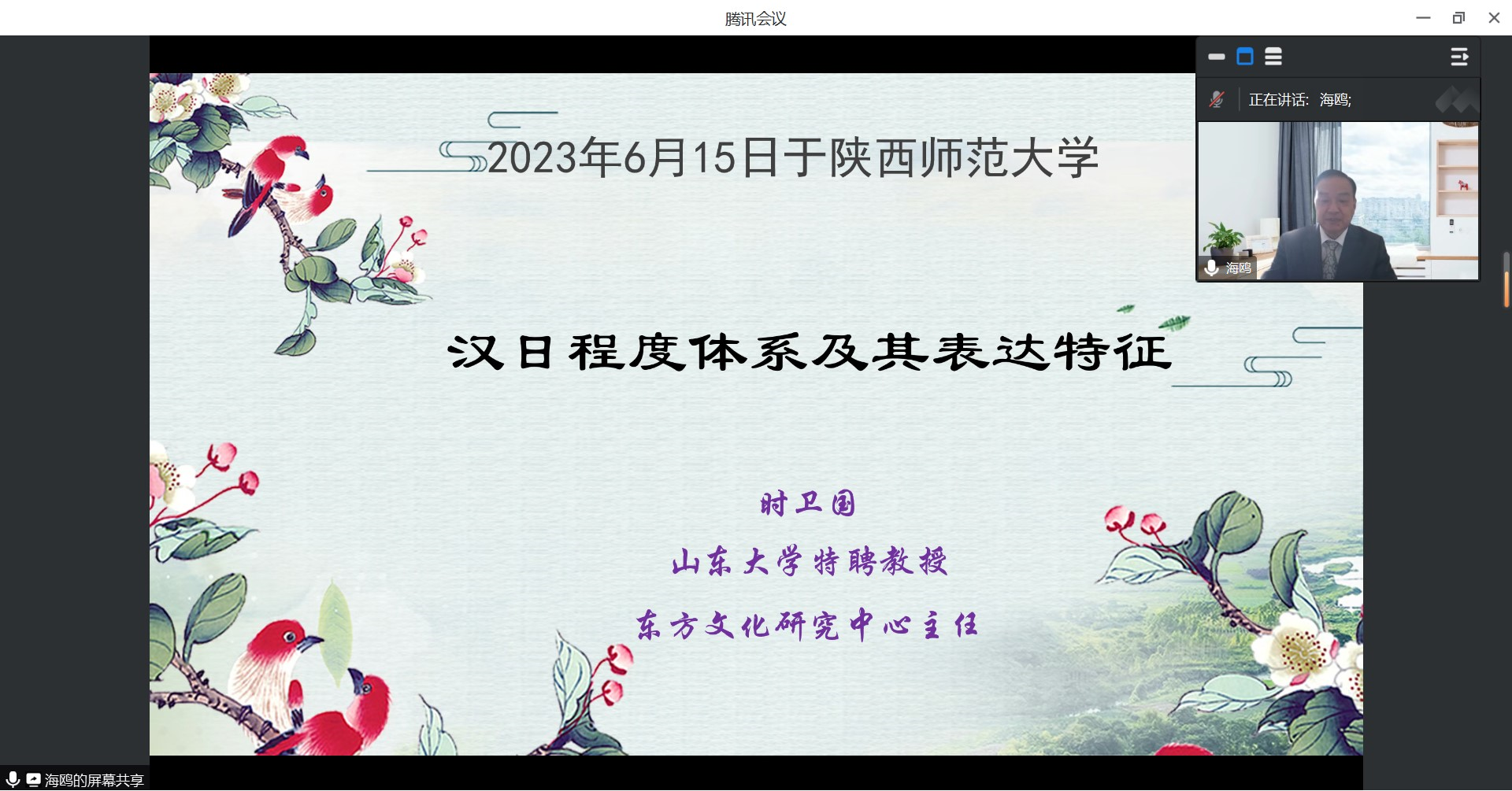 2023年6月15日下午15:30,威尼斯官网通过腾讯会议平台成功举办了以“汉日程度体系及其表达特征”为主题的第170场明德讲堂系列讲座。本次讲座由山东大学东方文化研究中心主任时卫国教授主讲,威尼斯官网曹婷副教授主持,40多名校内外师生参加了此次讲座。