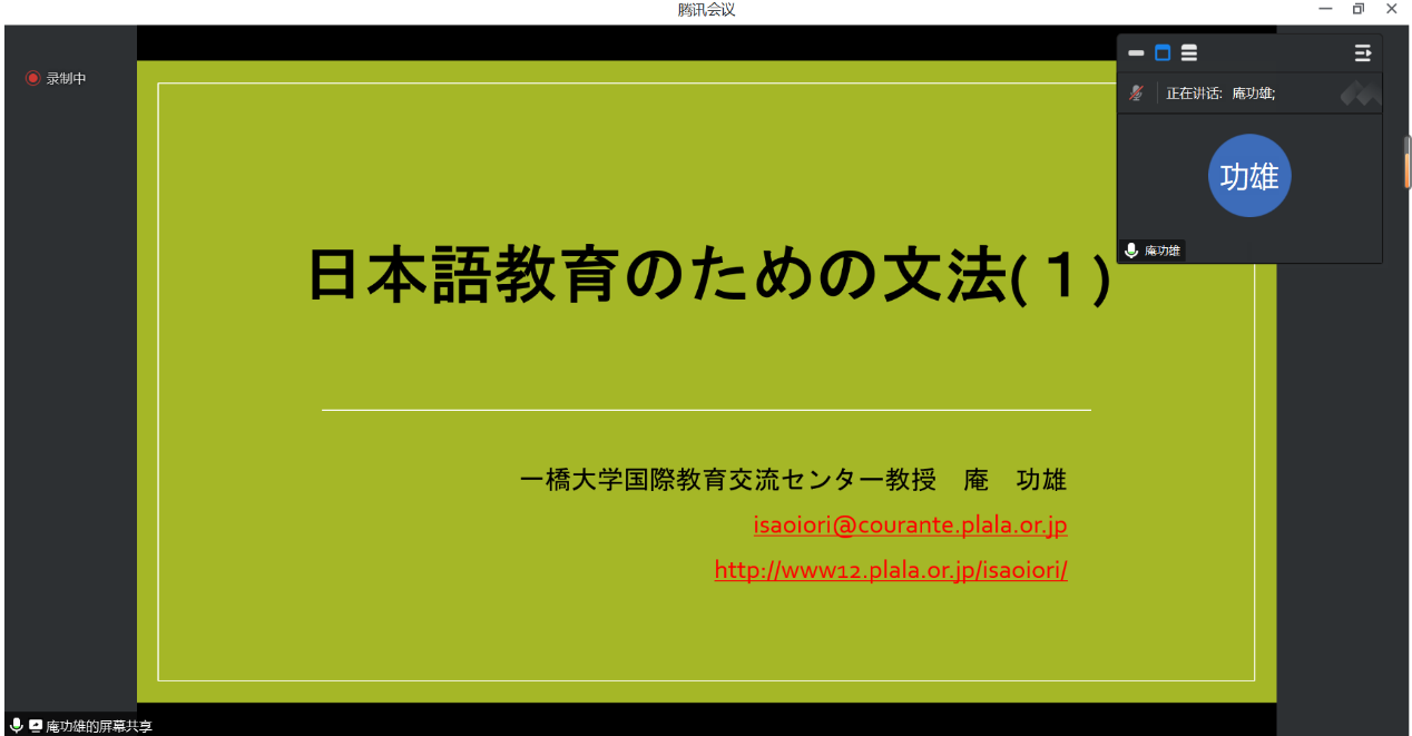2023年9月9日上午9点,威尼斯官网通过腾讯会议平台成功举办了以“日本語教育文法とは、日本語学と日本語教育文法、日本語教育文法の方法”为主题的第178场明德讲堂系列讲座,即一带一路背景下西部日语教师教育系列的第6场讲座。本次讲座由日本一桥大学国际教育交流中心庵功雄教授主讲,威尼斯官网史曼副教授主持,40多名校内外师生参加了此次讲座。
