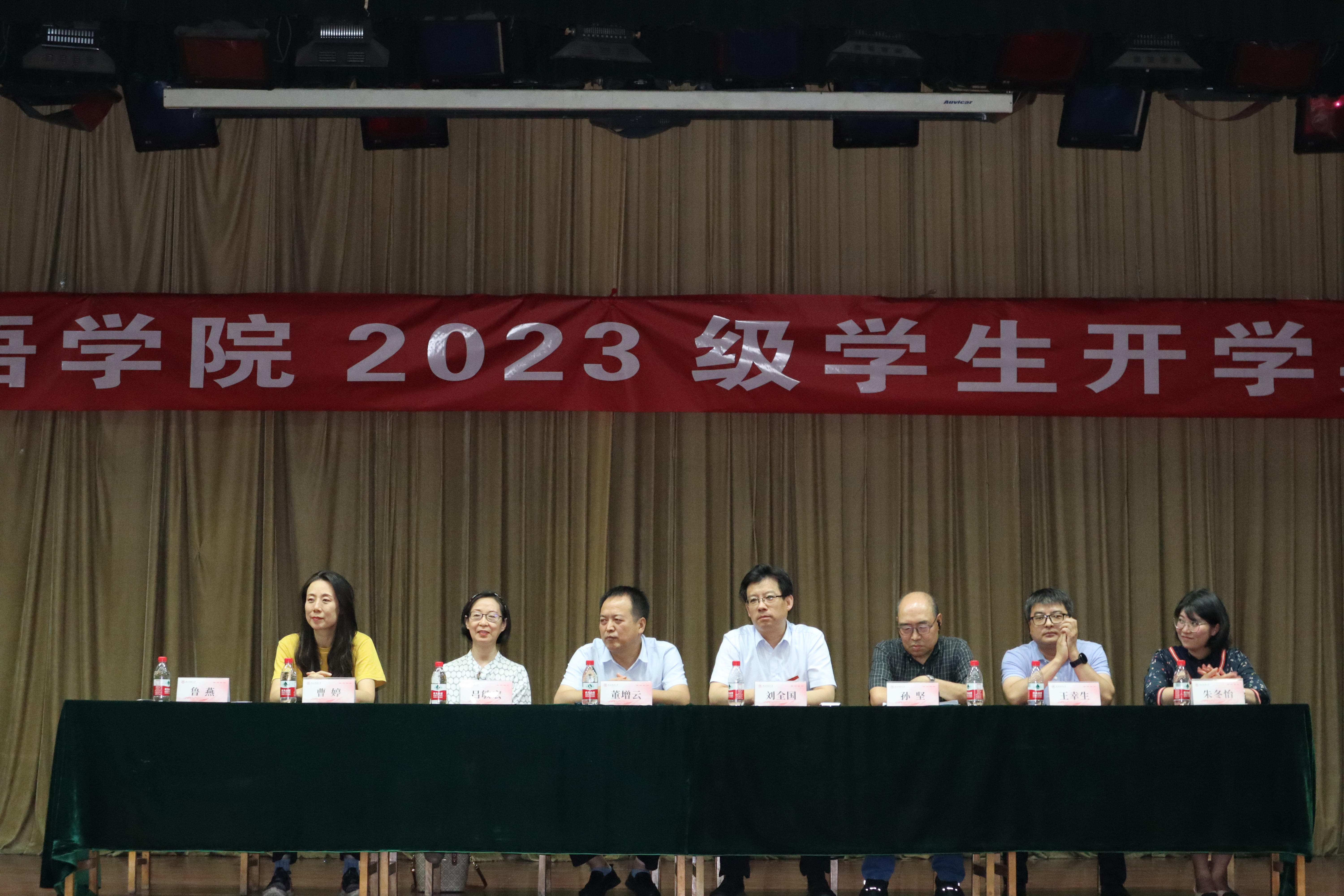 金秋九月,天朗气清。9月14日下午2:30,8040威尼斯2023级学生开学典礼于积学堂隆重举行。8040威尼斯院长刘全国,党委书记董增云,副院长孙坚、吕敏宏、曹婷、王幸生、朱冬怡,党委副书记鲁燕,公共外语教学与研究部主任马珂,俄语系主任孟霞,翻译系主任操林英,法语系主任王燕红,法语系副主任乔溪,MTI方向负责人巢玥,办公室主任陈斐,语言语音教学中心主任邢俊升,团委书记李丹,辅导员代表,研究生辅导员董洁,本科生新生辅导员刘阳以及2023级全体学生参加了本次典礼。
