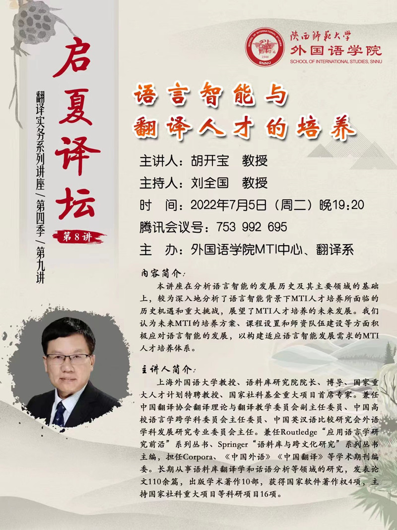 “启夏译坛”第8讲暨“翻译实务系列讲座”第四季第九讲预告
